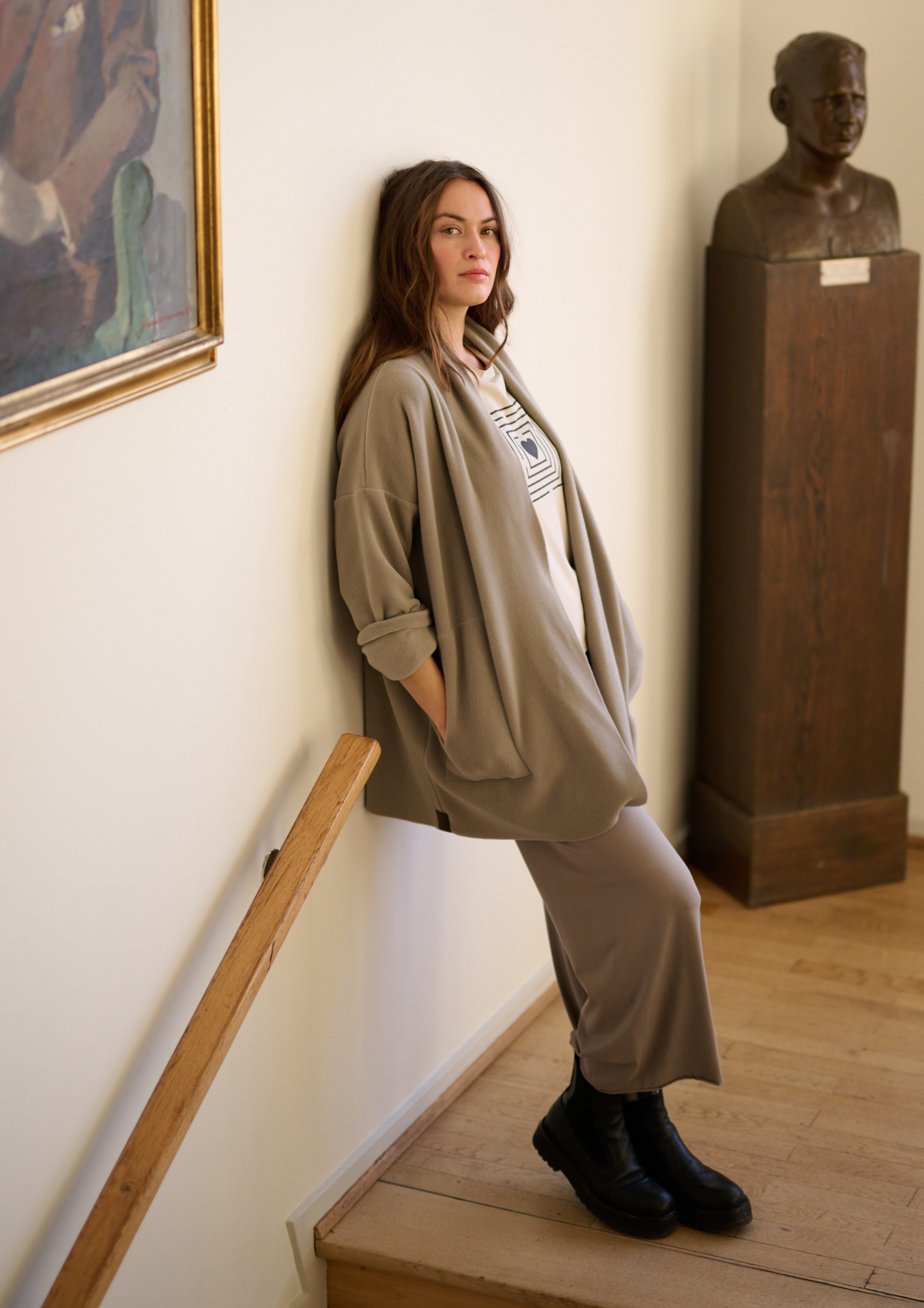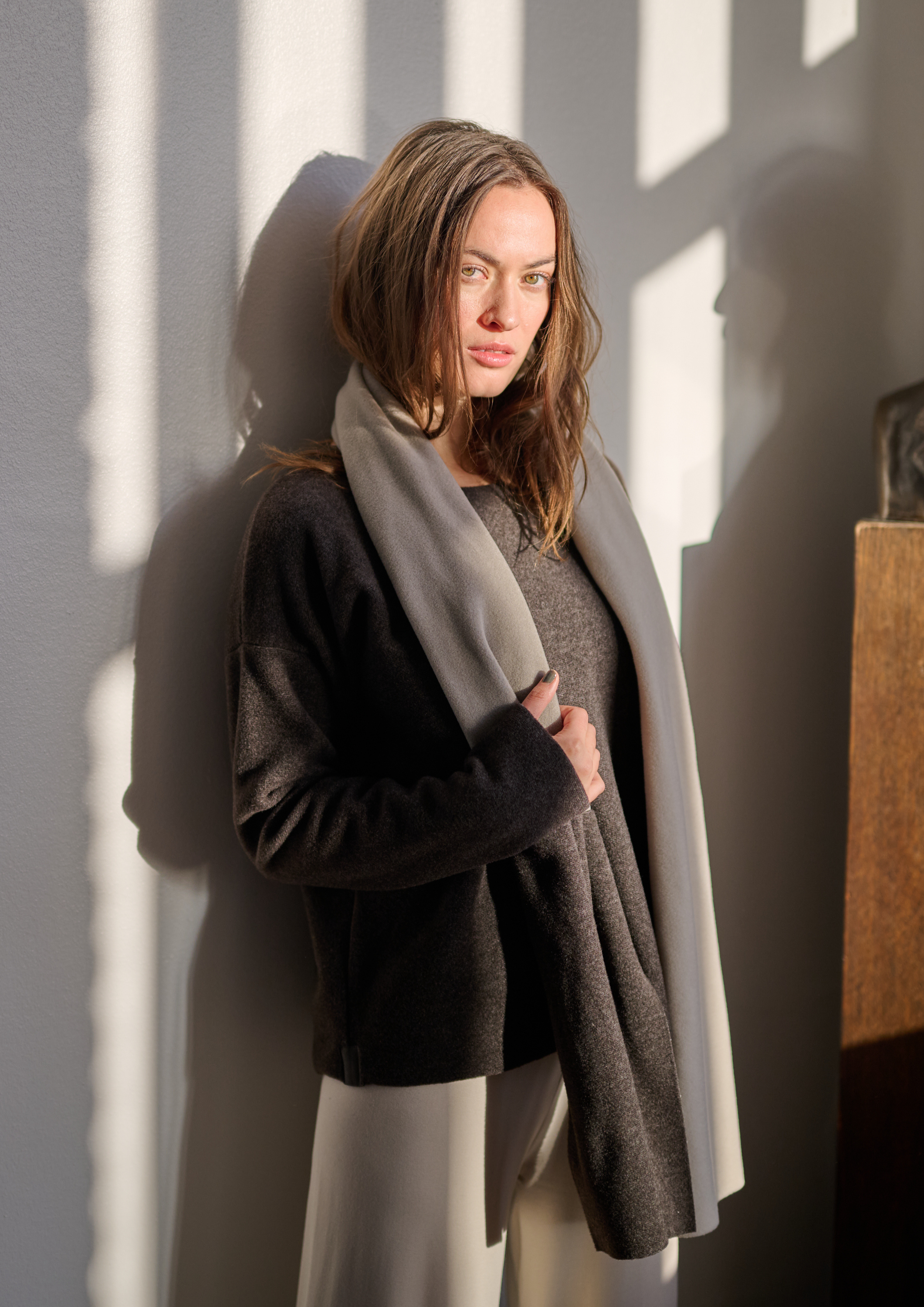 tværs af kollektionerne og kombinerer med det du har i forvejen. Vores basale farveunivers er bløde, rolige klassiske farver der leder tankerne hen på jord, træ, sten, vand og sand. Nogle gange årligt udvikler vi farver der har mere kraft og fylde som kan give dit look mere kant. Måske et tørklæde med en kraftig farve er nok for dig, hvor andre drømmer om en lang cardigan.